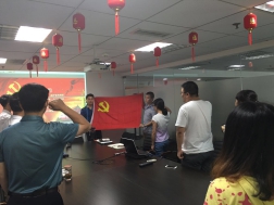 “我志愿加入中国共产党,拥护党的纲领,遵守党的章程……”伴随庄严的宣誓词,公司全体党员及预备党员在党总支宣传委员罗春的带领下,面对鲜红而又神圣的党旗,重温中国共产党入党誓词。