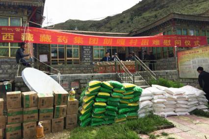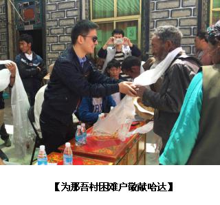在慰问仪式现场,公司党总支副书记、强基办领导小组副组长、副总经理索朗次旺首先代表公司向村委会和村民表示了感谢,感谢他们对公司驻村工作队工作的支持、理解和配合,随后章明书记为困难户发放了慰问品并敬献哈达。