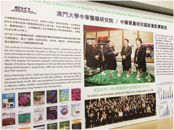 澳门大学中华医药研究院创建于2002年,并于2010年获准设立国家首个中医药领域的国家重点实验室——中药质量研究国家重点实验室。七年来,该研究院承担了中医药领域相关国家基础研究计划(973)、国家科技攻关计划、国家自然科学基金项目等三十多项重点研究项目,发表SCI收录论文1400余篇。
