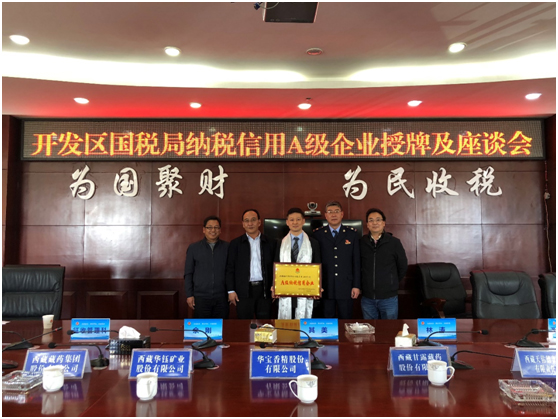会后,拉萨经开区国税局党组书记、副局长其美,局长林涛向纳税信用A级企业授牌、发放《A级纳税人优先服务卡》及敬献哈达,并合影留念。