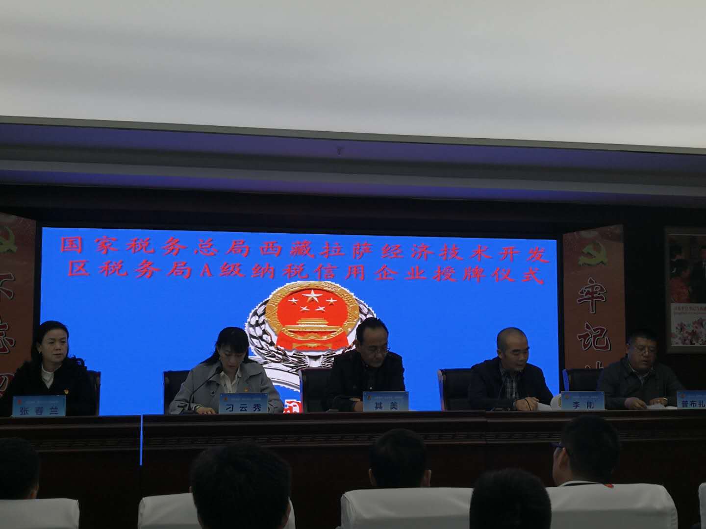 2019年5月21日上午10点,在国家税务总局西藏拉萨经济技术开发区税务局(以下简称“经开区税务局”)会议室隆重召开了“国家税务总局西藏拉萨经济技术开发区税务局A级纳税信用企业授牌仪式”,我司再获“A级纳税信用企业”殊荣。经开区税务局党委书记、副局长其美、副局长李刚等负责人及获此殊荣的三十位企业代表出席了此次会议。