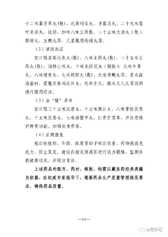 西藏自治区藏医药管理局发布的《关于印发西藏自治区新型冠状病毒肺炎藏医药防治方案(试行第二版)的通知》中,我公司生产的十味龙胆花颗粒被列为防治推荐用药。